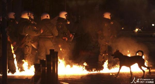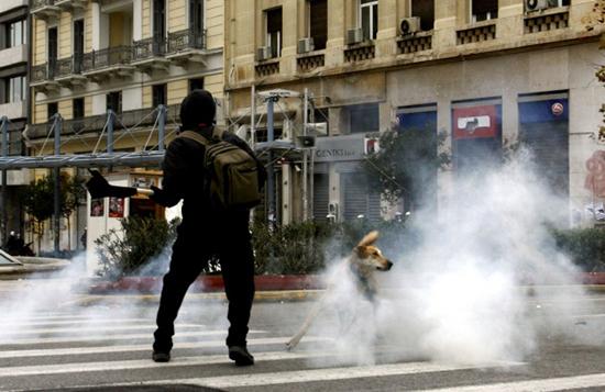 2009年12月,在希腊首都雅典的冲突中,一只土黄色的狗始终站在抗议人群的前面,与警方对峙,它就是目前希腊在网上迅速走红的“暴动犬”。