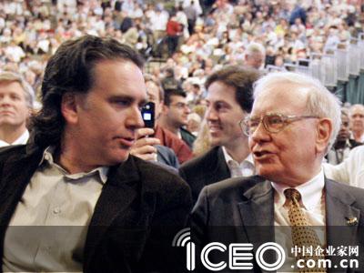 沃伦·巴菲特与儿子彼得·巴菲特在2007年度伯克希尔哈撒韦公司股东会议上(《中国企业家》网站图)