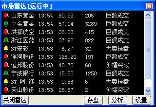 市场上1000多只个股,如何对其中的异动进行实时监控,市场雷达功能可以解决,及时捕捉大单买卖、快速涨跌等有异动表现的个股,使您最快了解到当前市场的变化。