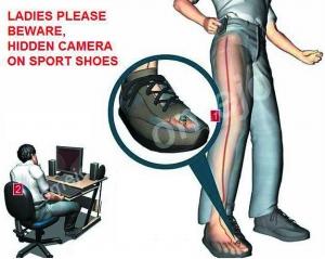 这款2.4GHz无线鞋子摄像头是一款真正意义上具有突破性的隐秘摄像头。它由摄像头和手机这两部分组成。摄像头隐藏在鞋子内,装有2.4GHz 发射器,可在三个频段下工作。GSM手机屏幕尺寸为3英寸,可接收摄像头信号并进行记录,拥有1G内置内存,最远可接收大约50米外的信号。虽然非常先进,但由于329美元的售价,普通老百姓估计不会掏钱购买。