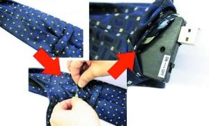 领带间谍摄像头堪称办公室的“终极监工”。在它的窥视下,谁拿公司的影印机干私活,谁在上班时间聊天和吃零食,谁又在偷办公耗材,一切都变得一览无余。如果够聪明的话,你可以戴着这条领带请所有同事喝酒,唆使他们在背后谈论老板,说老板的坏话,然后就可以依次为砝码达到升迁目的。领带摄像头存储容量为2GB,通过USB与电脑相连。
