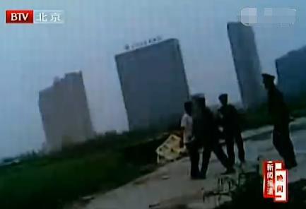据BTV《晚间新闻报道》报道,画面中身穿黑色制服的就是北京富士康3期南门的保安,当时一名保安正抽着一名员工的衣服,气焰十分嚣张,还不时推撞这名员工。