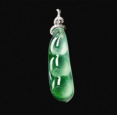 “福豆”,以翡翠雕成豆角。据说寺庙中常以豆角为佳肴,和尚称其为“佛豆”。