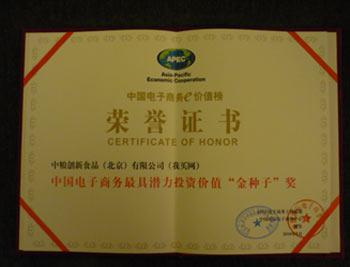 图:中粮我买网获得中国电子商务最具潜力投资价值“金种子”奖