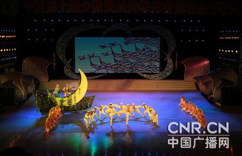 中广网银川5月25日消息(记者廉军 马玲艳)宁夏第七届少数民族传统体育运动会开幕大型文艺节目《美丽的宁夏可爱的家》24日惊艳亮相,浓郁的回族风格令现场观众无不为之陶醉。