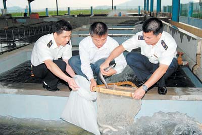 科学养殖需要用科学准确的检测来进行最后的品质安全把关。多年来,江门检验检疫局不断加大投入,努力在提升检验检疫监管工作的有效性上下工夫。一方面,该局加强了实验室硬件设施上的投入,为养殖全过程的残留监控提供了可靠的技术保障;另一方面,充分利用现有实验室资源和人才优势,开展水产品检测新项目的研究和攻关,检测能力和水平不断提高,并顺利通过CNAS的监督和扩项评审。同时,该局积极鼓励企业发展自身实验室,增强自检自控能力。其中,台山鳗鱼龙头企业———台山绿源水产贸易有限公司已具备了比较完整的检测能力,出口产品的安全卫生质量得到了有力保障。