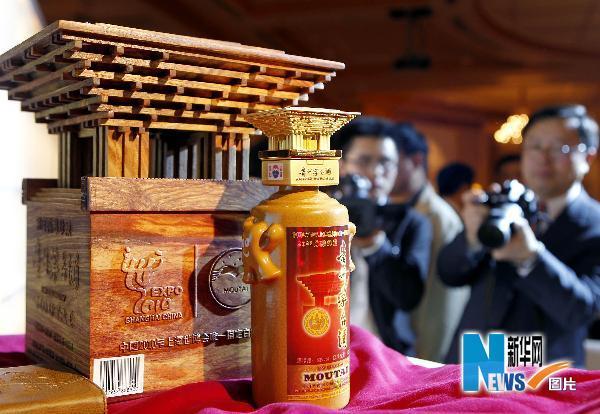 国酒茅台在世博园内推出根据各国家自建馆的建筑风格设计的限量纪念版“世博喜酒”