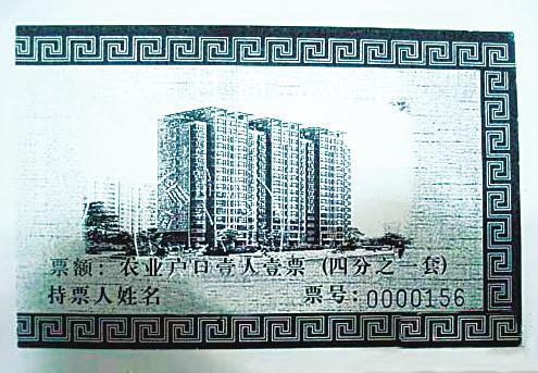 2009年,前程村按照每一个农业户口35平方米分配农民公寓的房票,这张房票虽然只是一张纸,但凭这张票,可以按照造价购买35平方米的农民公寓。而造价,和当地动辄上万的商品房相比,则是相当低廉。
