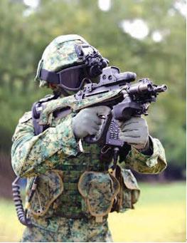 新加坡军队当前装备了ACMS(高级作战系统)。士兵使用的SAR21MMS卡宾枪上装有摄像头,可以捕捉和共享目标信息。