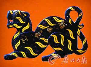 虎节是又一国宝级精品。这件虎节长19厘米,最高11.6厘米,最厚1.2厘米。它用青铜铸成扁平板的老虎的形状,虎成蹲踞之势,虎口大张,尾部弯曲成“8”字形。虎身上的斑纹铸有弯叶形浅凹槽,内贴金箔片,双面共用60片。虎眼、虎耳均由细金片勾勒出。在虎节的正面有错金的铭文“王命命车途”,是迄今为止发现的唯一错金虎节。