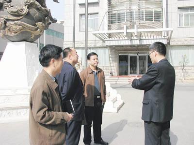 国家质检总局在天津召开检验检疫口岸直通建设天津现场观摩交流会期间,天津检验检疫局局长兰影(前右三)在天津振华海晶废物原料集中查验场库向国家质检总局副局长魏传忠(前右四)及与会代表介绍了天津口岸检验检疫“三集中”模式。