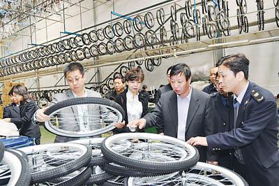 ⑦天津检验检疫人员走访中国自行车行业龙头企业———金轮自行车集团,解决企业在办理“普惠制产地证”和申请产品出口免验中遇到的困难。本版摄影 王延鹏 任振声