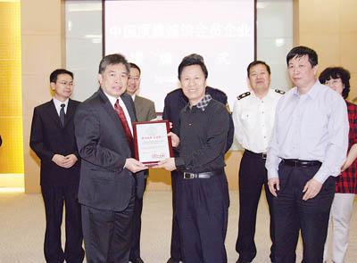 ⑥天津检验检疫局倾力帮助企业加强诚信体系建设,助推产品质量提升。图为天津检验检疫局授予优秀诚信企业“中国检验检疫协会质量诚信会员企业”称号现场。