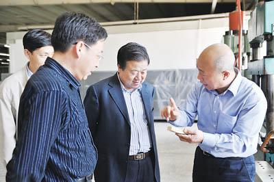 ②天津检验检疫局积极帮扶出口企业完善质量管理体系,提高产品质量。图为深入天津鑫高宠物用品有限公司生产车间调研。
