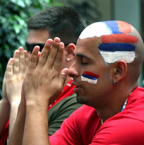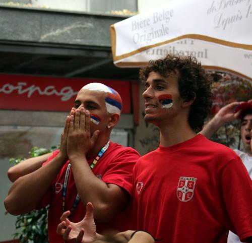 6月13日,塞尔维亚球迷看到本队失利后表情沮丧。当日,塞尔维亚球迷在贝尔格莱德市中心观看世界杯D组塞尔维亚队与加纳队的比赛。最终,塞尔维亚队以0比1负于加纳队。新华社发(戴振华摄)