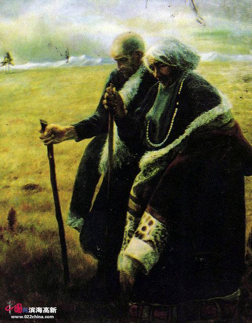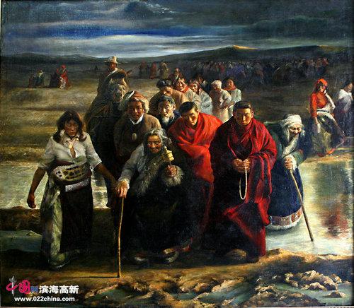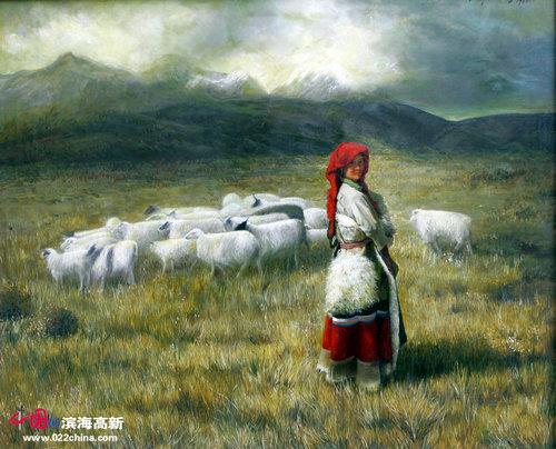 《暮》是藏族组画中的一幅代表作,用写实的油画语言描绘两位古稀之年的藏族老人拄着拐杖在雪域高原上散步。晚霞之旖旎,草原之辽阔,天空之浩淼,若人间天境。脚下的牧草已经金黄,预示着人生晚景的收藏。他们身后是隐隐约约的阿斯旺的纳赛尔湖上阿里王朝的神殿。思想决定高度,画家没有去用笔描绘阿里王朝神殿的辉煌,却细腻地刻画两个藏族老人,岁月如刀,将两张充满生机与活力的脸,雕刻成这般沧桑,希冀与梦想。他们脸上那刀刻般的皱纹,那饱经沧桑的双眼。花瓣散落时,才会懂得花儿的痛。人生几十年,而死却很久很久。《暮》中极端严谨的素描,饱满而富装饰性的色彩,线条流畅的对称性构图的油画表述语言,这种人物和景致相结合的艺术,是非常完美的艺术,既有古典深沉的典雅,同时还有现代绘画形式的构成,这就是新的用油画来表现画家心境的“文人画”,可以看到油画家张文亮的艺术匠心。