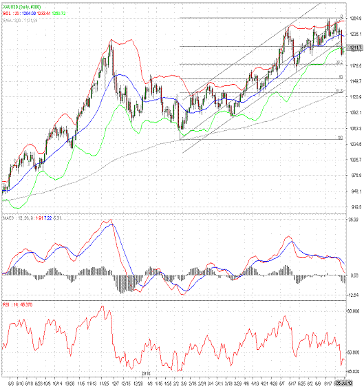 因美国非农就业数据表现低迷,加深了投资者对于未来经济复苏前景的忧虑,进而买入现货金寻求避险。此外,周四现货金大幅下挫,吸引了逢低买盘涌入金市,也提振了金价。美国劳工部上周五公布的数据显示,美国6月季调后非农就业人口减少12.5万人,符合市场预期,这是非农就业人口今年首次下降,降幅为2009年10月来最高;其中,美国6月季调后私营部门就业人口增加8.3万人,不及市场预期的增加11.2万人。疲弱的就业数据表明美国经济复苏正在放缓,市场上的避险情绪随之上升。现货金最终收盘报1,211.2美元/盎司,较前一交易日上涨12.4美元/盎司或1.03%。现货白银收盘报17.80美元/盎司,较前一交易日收盘上涨0.04美元/盎司或0.23%。