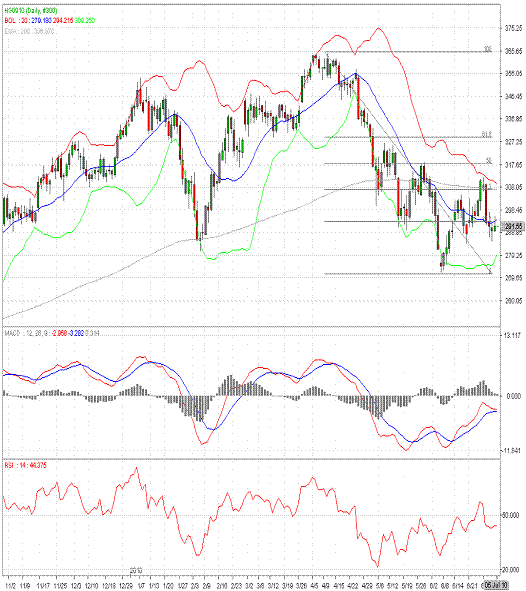 COMEX-9月期铜上周五收带有长上影线的小实体阳线。技术指标方面,MACD(12,26,9)有在零轴下方形成死叉的趋势,若形成死叉,可看作可靠的沽空讯号。持有空单的投资者可以继续持有,止损设在313.00,目标看270.00。
