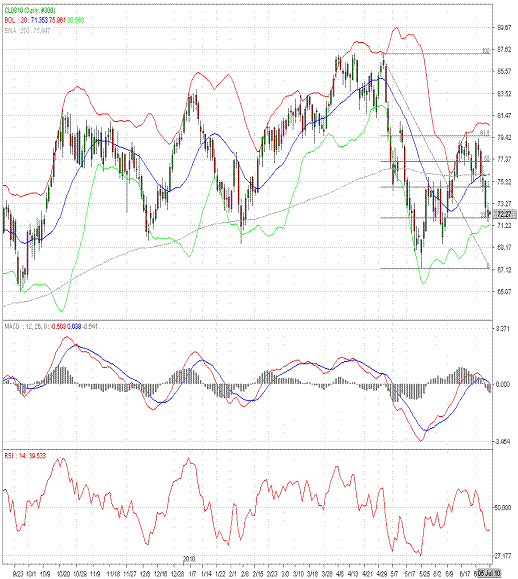 美国公布的疲弱的经济数据打压了市场对于美国经济持续复苏的信心,投资者进而对原油的需求感到担忧,上周五原油期货收低。美国劳工部上周五公布的数据显示,美国6月非农就业人数减少12.5万人,为今年首次下降。美国商务部稍后公布的数据显示,因运输业相关订单大幅下滑,美国5月份工厂订单月率下降1.4%,创14个月来的最大降幅,市场预期为下降0.5%。NYMEX-8月原油期货收盘报72.08美元/桶,较前一交易日下跌0.83美元/桶或1.14%。