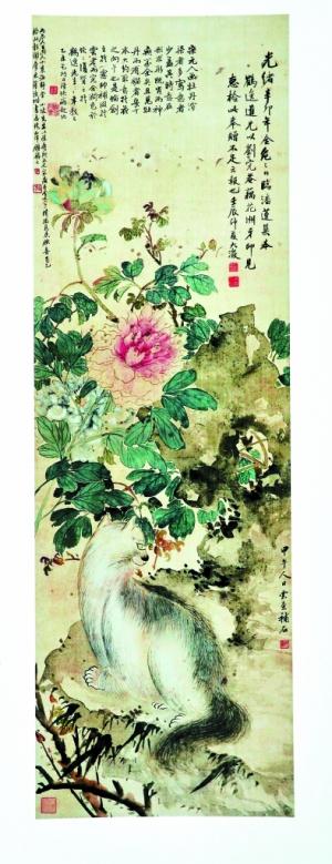 《大善之美——深圳博物馆藏社会捐赠文物精华展》从6月12日起,一直在深圳博物馆新馆展出。展览中,市民可以看到一幅清代画家吴大澂等人合作的《猫石牡丹图》,这幅画作在绢本上绘有白猫、假山石、牡丹等等,其以工笔写猫,以没骨法写花石,颇具文人画雅致秀润的特点,设色淡雅,秀逸清朗。