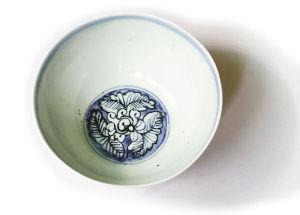 另一只明代福寿青花碗,碗底落款是一个“福”字,碗身饰以为中国古代符号标志的回字纹。省收藏家协会副会长陈发启说,此碗为混合料,因而色釉色呈青黑色;在碗底落款的样式较少见,这在出口瓷中代表着最高档次,可能是当时我国送给国外官方所用。