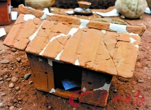 考古人员告诉记者,此次机务段工地的墓群中并没有发现水井、灰坑、房址等生活设施的遗迹,可见这片地方在古代是作为专门的墓地使用的。但记者在出土文物中发现,大屋、谷仓、水井,这些古代农耕社会必不可少的设施,被当时的工匠制成微缩模型,放到先人的墓中。
