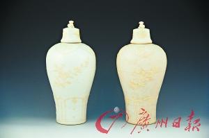 东莞市博物馆收藏有藏品1万多件(套),其中最为名贵的,称得上“镇馆之宝”的,却是一对明初年间的白釉贴花带盖瓶。