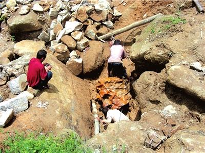 目前,裸露于大黑山山体表面的草皮料已被村民基本捡拾干净;河谷内出产的籽料,好挖的地方已被人翻了多遍;埋藏更深的河滩籽料、需要开洞挖掘的山料,受云南天气多雨、山体疏松、施工条件简陋等多重条件的影响,很容易塌方。