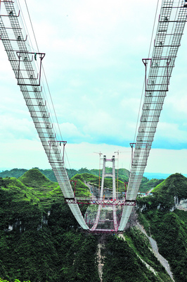 凌空330米架设主缆钢索 矮寨大桥明年底投入使用