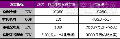 上海世博选用远大一体化非电空调与选用电空调方案的对比: