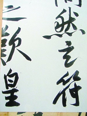 王乃栋告诉记者,在黄庭坚的作品中,所有“玄”字都是不带点的,他举《松风阁帖》(现藏台北故宫博物院)为例,“五十弦”末笔不带点,上提圆润自然,黄庭坚诗稿中“玄”字也是不带点的。而《砥柱铭》中,“玄符仲尼之叹”句中的“玄”字,乍看是不带点的,而对照保利公司印刷的《砥柱铭》图册,“玄”字最后一点有明显的刮痕,痕迹与上句“无间然”的最后一点完全相似。