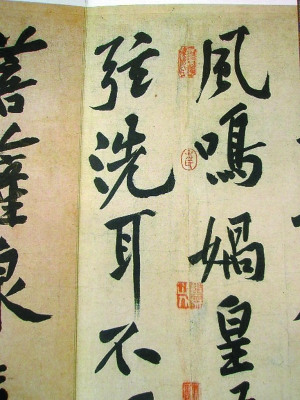 历史上著名的大书画家,作品非一般人能够模仿,风格可仿,造诣绝对仿不到。黄山谷就是这样。比如有一幅《幽兰赋》,是明人仿黄山谷的,现代人以假乱真,把它印成字帖来卖,是一种典型的俗。《砥柱铭》的问题也是这样。傅申等人认为是其中年后风格的变化,但有一点他们无法辩驳:中年之后怎么会不如早年的《华严疏》那样笔法圆滑、神韵高雅呢?