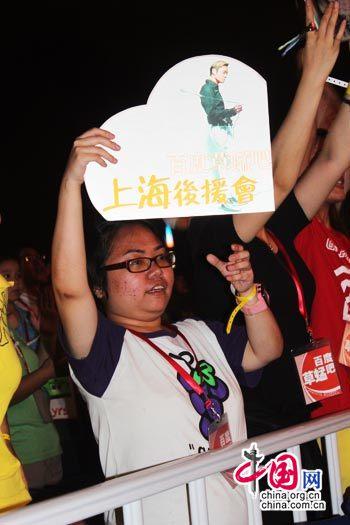 歌迷举起心型灯牌高呼草蜢的名字。中国网 赵萌 摄