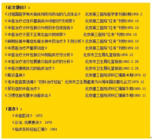 1960年为了深入研究妇科疑难症,出任“北京妇产医院”中医主治医师。