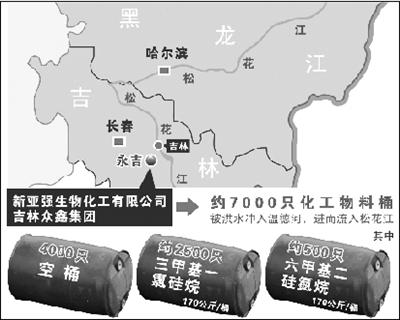 化工物料桶流入松花江事件示意图。新华社发