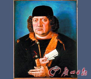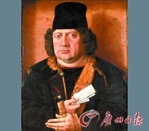 模仿小霍尔拜因的赝品的本来面目。戴的帽子比后来的莫纳尔的高一截,而且人物身后的背景也显得黯淡一些。