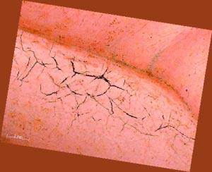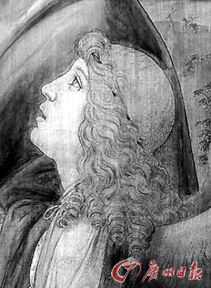 局部的红外扫描图:天使的头发是用石墨画的,但是16世纪意大利没有石墨。