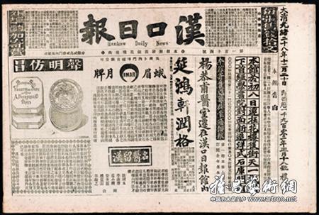 据悉,《汉口日报》是1902年10月15日由浙江商人宋炜臣创办,内容多于晚清时期推行新政有关,1904年初,《汉口日报》由张之洞接收,改为官报。