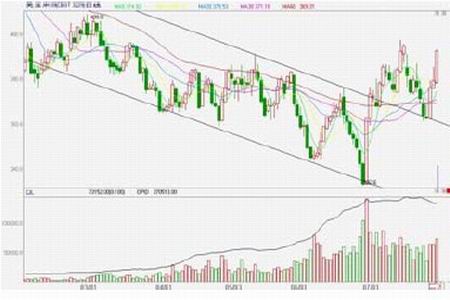 近年来,玉米运行于上涨趋势线一上不断攀高,2008 年受到经济危机的影响,有所回落,下跌至低点(从支撑线到低点距离与前期支撑线至高点距离相当)后技术反弹,此时前期支撑线成为其反弹阻力线,玉米未能穿越下方支撑进而拐头向下,攀上另一条涨速更迅速的支撑线二加速向上运行,但在玉米期价行至历年来的最高点1977 元/吨时,玉米5 月份一度成为“玉米疯”,国家不得不加强调控措施来合理适当的压制玉米的价格,使其得到有效的回落,跌破上涨趋势线二下行,又重新回落至09 年以前的上涨趋势线一,受其支撑止跌反弹。由于受到趋势线二的压制,料会在两线之间沿趋势线二上行。