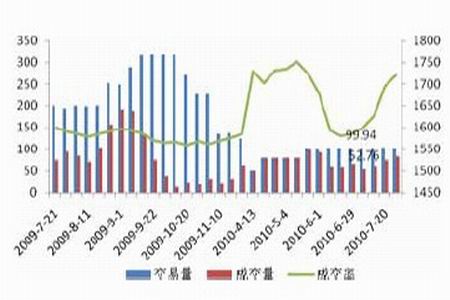 其实每月报告出台前市场关于报告的数据倾向已经有所迹象,8 月10 日美国农业部将会出台本月月度供需报告,上月农业部供需报告中调低了出口数据,新作出口总量较6 月份的报告数据调低了5000 万蒲式耳,即127 万吨,而实际上受到欧洲天气不利于作物生长,玉米将减产的影响,7 月份的新作出口相对良好,仅较6 月份数据低了53 万吨左右,故初步预计8 月份的月度供需报告中将会较大幅度调高新作出口数据。此外,据麦格理集团预计,2010 年美玉米最终单产将在163.1 蒲式耳/英亩,低于美农业部7 月供需报告的163.5 蒲式耳/英亩。该预估数据是在对7 个州的作物进行考察后做出的,进而玉米产量有望在8 月份的月度报告中继续被调低。如果真是如此,该利好将继续对市场形成支撑。不过这种利好一般反映在报告出台之前的市场上。