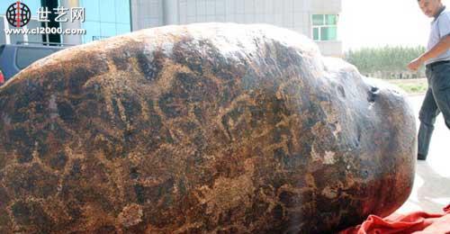 据悉,这件岩画是当地一位经营玉石生意的老板在距县城120公里左右的戈壁滩上所发现,该岩画构图精妙,形象生动逼真,以动物图案最多,还有一些让神秘元素,整体大约90多幅。虽然线条单一、构思原始,但画面不落俗,形象逼真,生动而又优美。