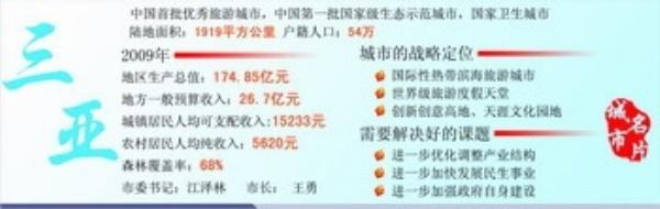 数字最具说服力:这个户籍人口54万的城市每年接待超过800万以上的游客;旅游业收入占GDP比例超过70%以上;自1998年以来经济已连续12年实现两位数增长;自2005年以来一直位居海南省各市县经济和社会发展指标考核第一名。