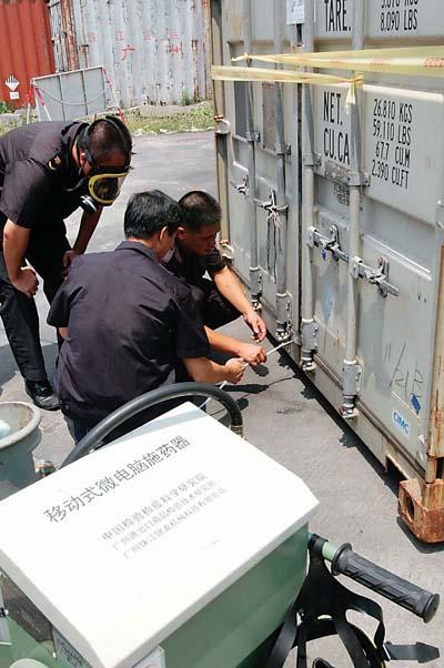 在全球经济一体化的今天,严格对出入境货物及运载工具实施有效的卫生除害处理,是各个国家和地区防止外来有害生物入侵,保障本国人民健康和生态安全的重要手段。广州检验检疫局科研小组历经三年多艰苦攻关,成功推出“移动式微电脑施药器”,独树一帜地引领熏蒸消毒手段步入新时代,被国家质检总局科技委鉴定为“是一种集成创新的成果,填补了国内外空白,处于国际先进水平。”