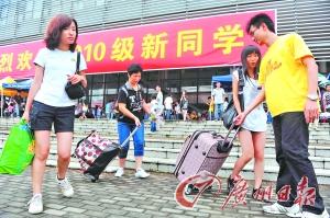 上周末,东莞理工学院以及广东医学院东莞校区两所高校的5500多名新生来报到。