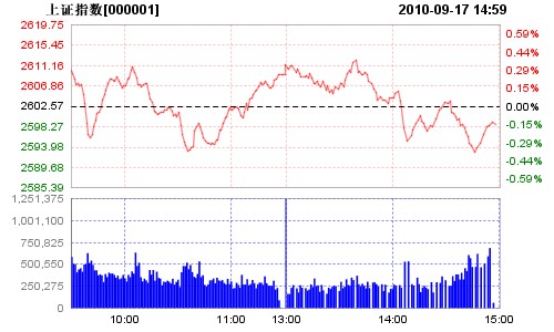 指数运行情况开盘价最高价最低价收盘价涨跌幅成交额(元)上证指数2607.552615.082592.542598.69-0.15%946.55亿深证指数11180.3211243.4011113.2211208.250.40%867.51亿更新时间:2010-9-17 15:30