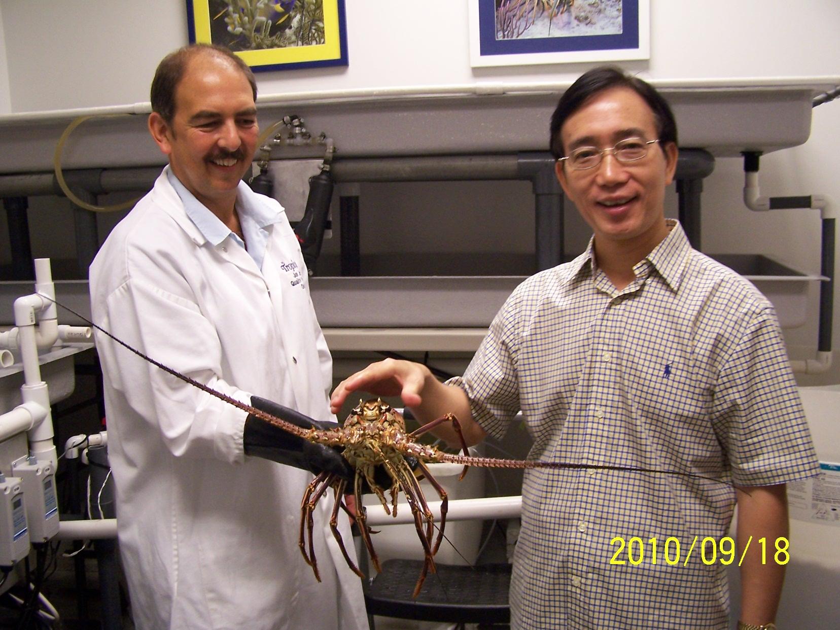 公司研究人员向胡大使介绍龙虾繁殖研究情况