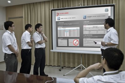 G-BOS的工程师在研讨工作 故事还得从一个多月前说起。7月13日,云南昆明交通集团安宁分公司的王松师傅驾驶大巴从昆明返回安宁,车进站刚刚停稳便接到了机务处通知,让他下午驾驶着自己车号为云AS4117的海格KLQ6125B大巴到苏州金龙服务站跑一趟,进行车辆速比和发动机功率调配,通知说经过调校后可降低油耗。