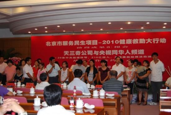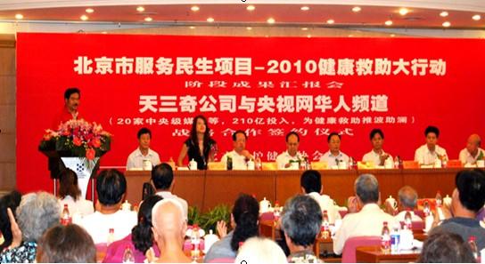 近日,北京市服务民生项目"北京.2010健康救助大行动"阶段成果汇报会暨天三奇公司与央视网《华人频道》独家运营机构--益言汇堂文化发展(北京)有限公司,战略合作签约仪式在北京会议中心举行。