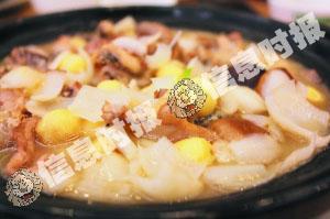 百合莲子用于煲糖水就听得多,想不到用来做菜也别有一番风味。近日小记在黄鳝世家品尝到一款“百合莲子煮石蛤”,名字听起来怪怪的,但味道却令人惊喜。莲子和百合煮得又绵又烂,莲子起沙几乎入口即化,比煲糖水时更好吃。浓浓的汤汁中,饱含了莲子的清香味与石蛤的鲜甜味,喝起来香味浓郁,味道相当赞。至于石蛤虽然是肥嫩多肉,但是其鲜甜味几乎都流失在汤汁中,有点可惜。不过,这款新鲜的菜式的确适合秋冬吃,大人小孩都会喜欢。