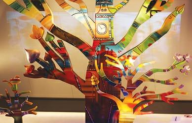 很多人都见过或者玩赏过俄罗斯套娃,娃娃们相互套在一起,你中有我,我中有你,世界各地的人们赋予了它各式各样的意义,寄予亲情、见证爱情,或者是表达思念。进入世博园里的俄罗斯馆,你就会发现“套娃”家族人丁兴旺,都是一色的绚烂夺目。形状自是千变万化,色彩明黄、翠绿、大红,热烈奔放;还有娃娃城堡,不过是由乌龟驮着;“童话树”自然是少不了的,赶快对它许个愿吧!看看树梢上挂着的“愿望果”,你就知道了:你许的愿都能实现的。